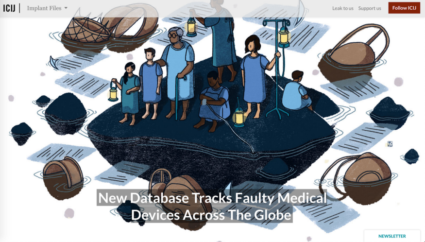 過去十年,醫療設備的故障可能導致約8萬多人死亡,以及170萬人受傷。國際調查記者組織ICIJ 從美、加、西班牙、印度等 11 國收集 7 萬筆醫療設備的召回、安全警報紀錄,並使用機器學習調查這些紀錄與病患的關聯。在美國,召回原因的大宗是設計問題,占整體的 22.7%,而骨科、腸胃科、泌尿科與心血管科則擁有最多召回案件。相關檔案都已經彙整成「國際醫療設備資料庫」(International Medical Devices Database)供人研究,不過各國政府開放資料程度不全,如印度僅有 14 筆紀錄,將影響研究的精確程度。