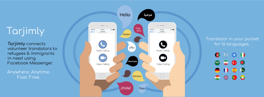 兩年前,有感於外來難民時常面臨語言溝通困難的問題,兩名剛從麻省理工學院(MIT)畢業的年輕人 Aziz Alghunaim 和 Atif Javed 創建了一個臉書機器人「Tarjimly」,要迅速讓難民可以找到協助翻譯的志工。當時適逢川普頒布七個穆斯林國家的旅遊禁令並阻撓難民的重新安置,他們就趕緊推出這個應用程式,幾天內就有超過 1500 名翻譯志工加入;看到大眾的踴躍使用,兩人就辭去工作,專心以非營利方式繼續經營 Tarjimly。