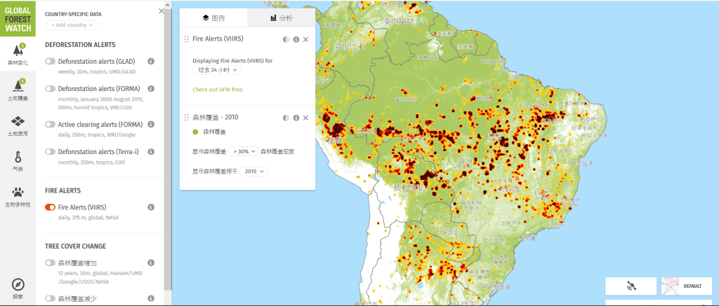 巴西新任總統 Bolsonaro 上任後,今年巴西已經發生了逾七萬起火災,其中大部分都發生在亞馬遜雨林,這些森林大火已經嚴重危及地球的生態。因此,國際非營利組織 World Resources Institute最近推出 Global Forest Watch 計畫,利用演算法與美國太空總署(NASA)的衛星資料製作出「火警地圖」,每十二小時更新一次,即時呈現各處可能發生的火災,一方面幫助監測可能的濫伐行為,另方面也讓企業可以追蹤當地合作廠商是否受到影響。