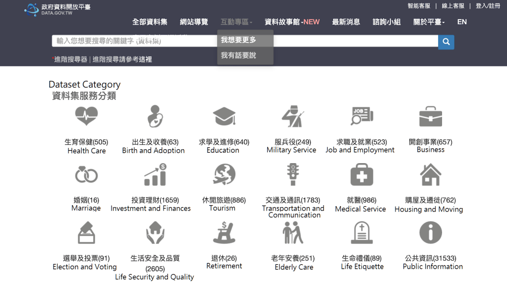 Under the guidance of the policies of the NDC, a “government data open platform” (data.gov.tw) was established for Taiwan in 2013. There are more than forty thousand pieces of data related to people’s food, health, housing, transportation, education, and entertainment piled up by far that allow people to download from the website for free.
