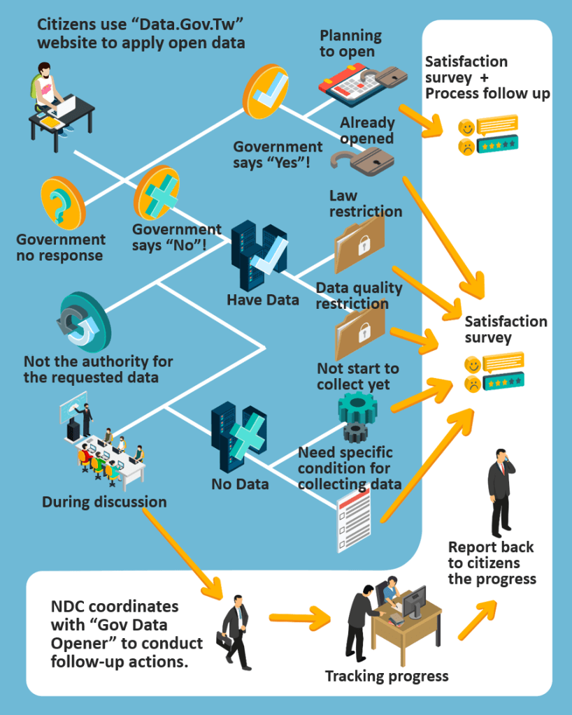 Taiwan was ranked as the high quality Open Data government in 2015 and 2016 by “Global Open Data Index". However, since than, there is no further development and many open data sets are still lack of function. This October, Taiwan National Development Council suddenly announced the draft of “Open Data Act" is under discussion. Before we finally step into next stage, let us review what is really going on when citizen request the data from government.