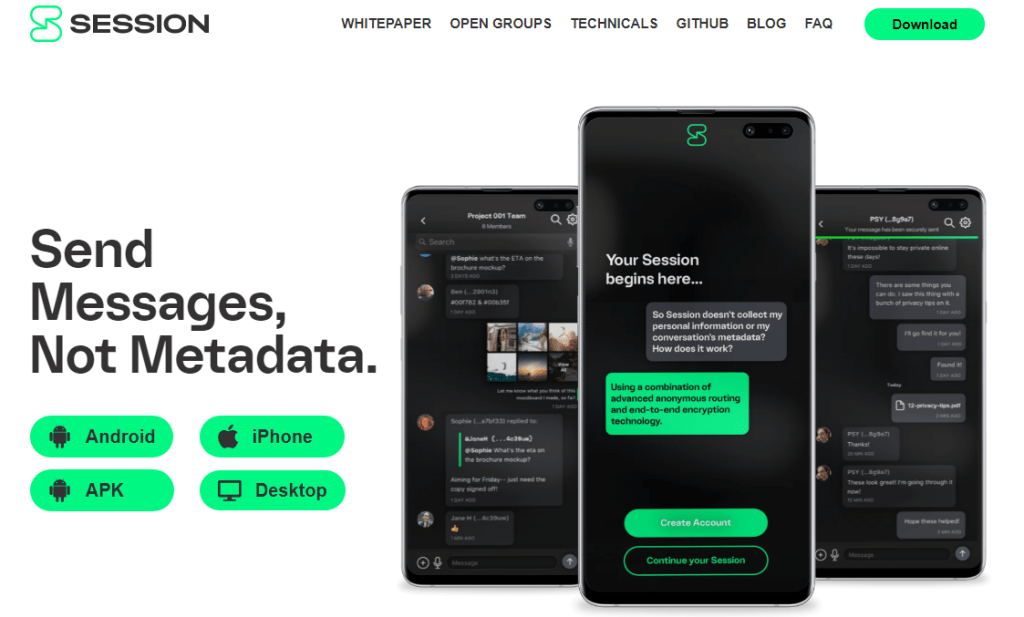不過新的通訊軟體「Session」,不僅有點對點加密、開放原始碼(GitHub),甚至不收集通訊資料——打開軟體後,不需使用手機、電子信箱等私人資訊註冊,使用者會直接獲得一組 ID 與密碼,朋友可以透過 ID 找到你,你自己則將密碼保管妥當,換手機時就可以繼續使用原本身分。更棒的是,Session 內建類似 Tor 去中心化的連線技術,幫助你隱藏通訊 IP,真實維護「匿名性」,不產生數位足跡。