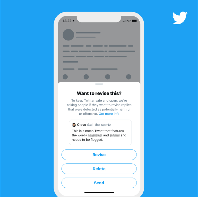 你有在社交媒體上話說出口卻後悔的經驗嗎?根據 BBC 報導,為了幫助你講話前經過大腦,Twitter 正在手機版軟體上測試新的功能。如果你是用英文發推,內容包含了特定髒話等可能造成傷害的用語,Twitter 會在送出前跳出警告:「發文之前要不要檢視此項發言?為了讓推特更安全及公開,請大家檢視可能造成傷害與冒犯的留言」。目前這項功能尚在測試階段,使用者如果對機器辨識的結果感到不合理,也可以透過系統內建的回報功能告訴 Twitter。