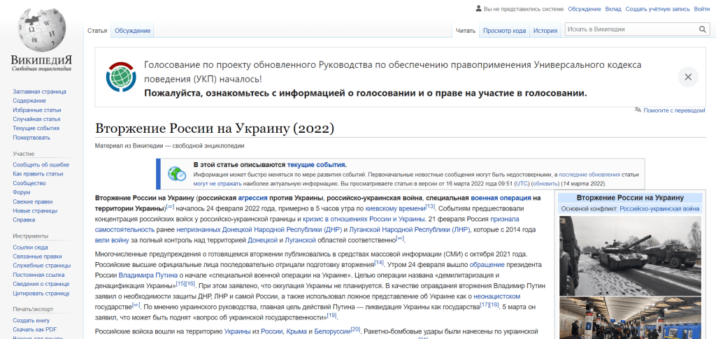 維基百科對於俄羅斯入侵烏克蘭的描述,被俄方當作「非法散布資訊」
